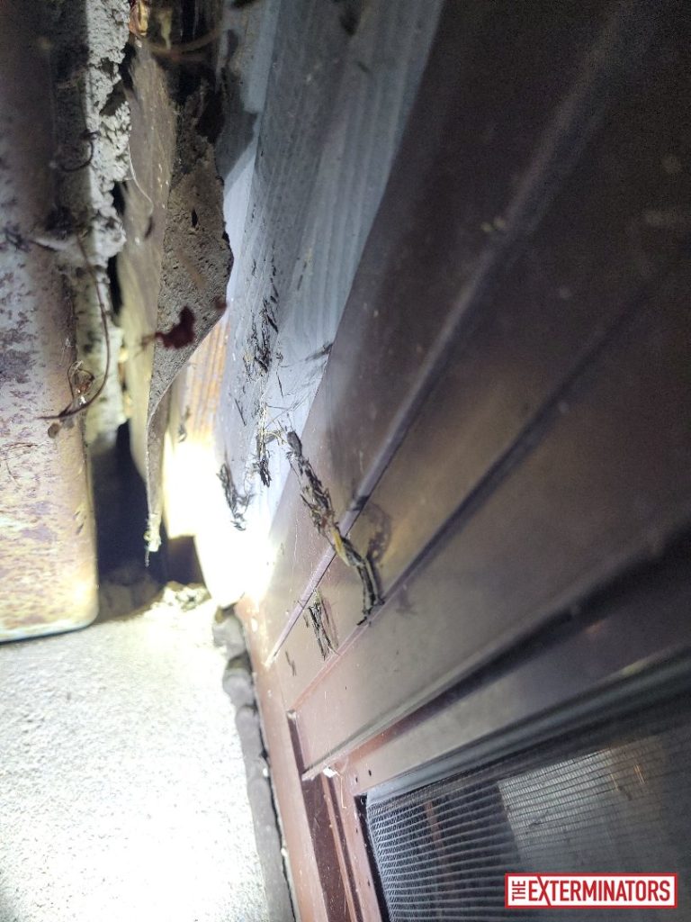 Interior inspection confirmed rodent activity consistent with rats accessing structural voids.