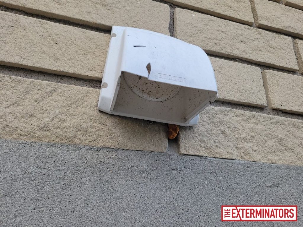 Rats commonly exploit structural openings created by aging construction materials or renovations. In this case, the removal of a functional dryer vent left a direct exterior opening into the wall cavity.